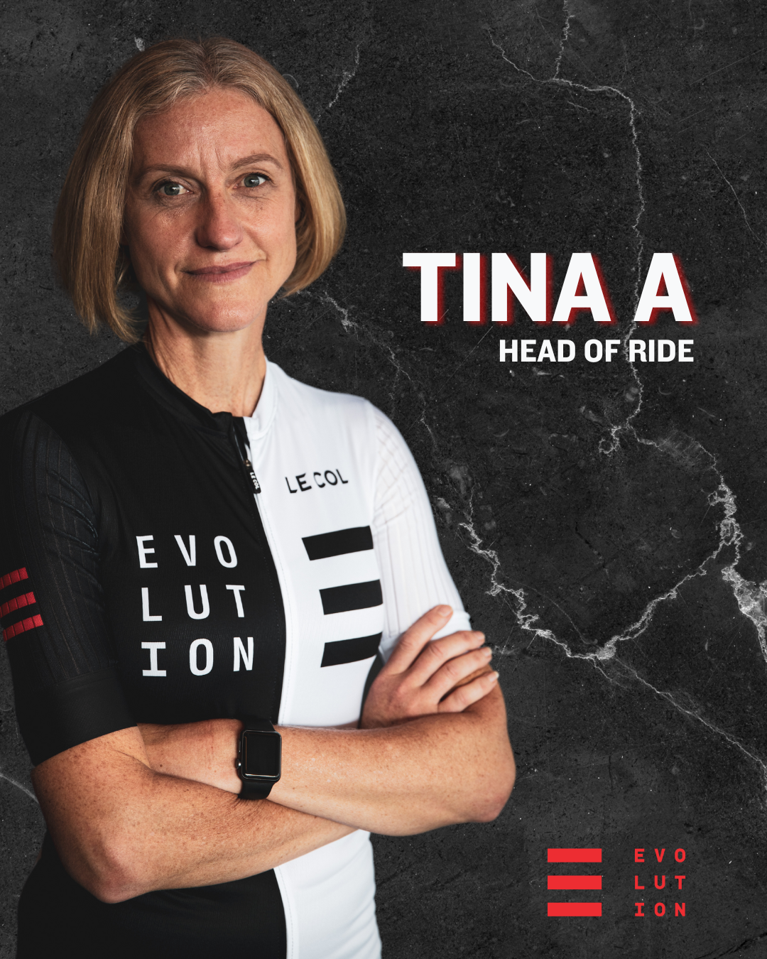 Tina A is our Head of Ride and Cycling Coach. Her classes are science-based, structured and precise, wrapped up in a unique EVO style with euphoric tunes. Whatever your level, Tina will help you reach your potential.